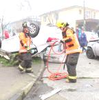 Tres escolares heridos dejó volcamiento de vehículo en Chillán