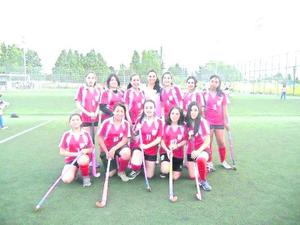 Naciente equipo de hockey en el podio
