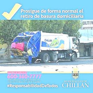 Retiro de basura domiciliario opera con normalidad en todo Chillán